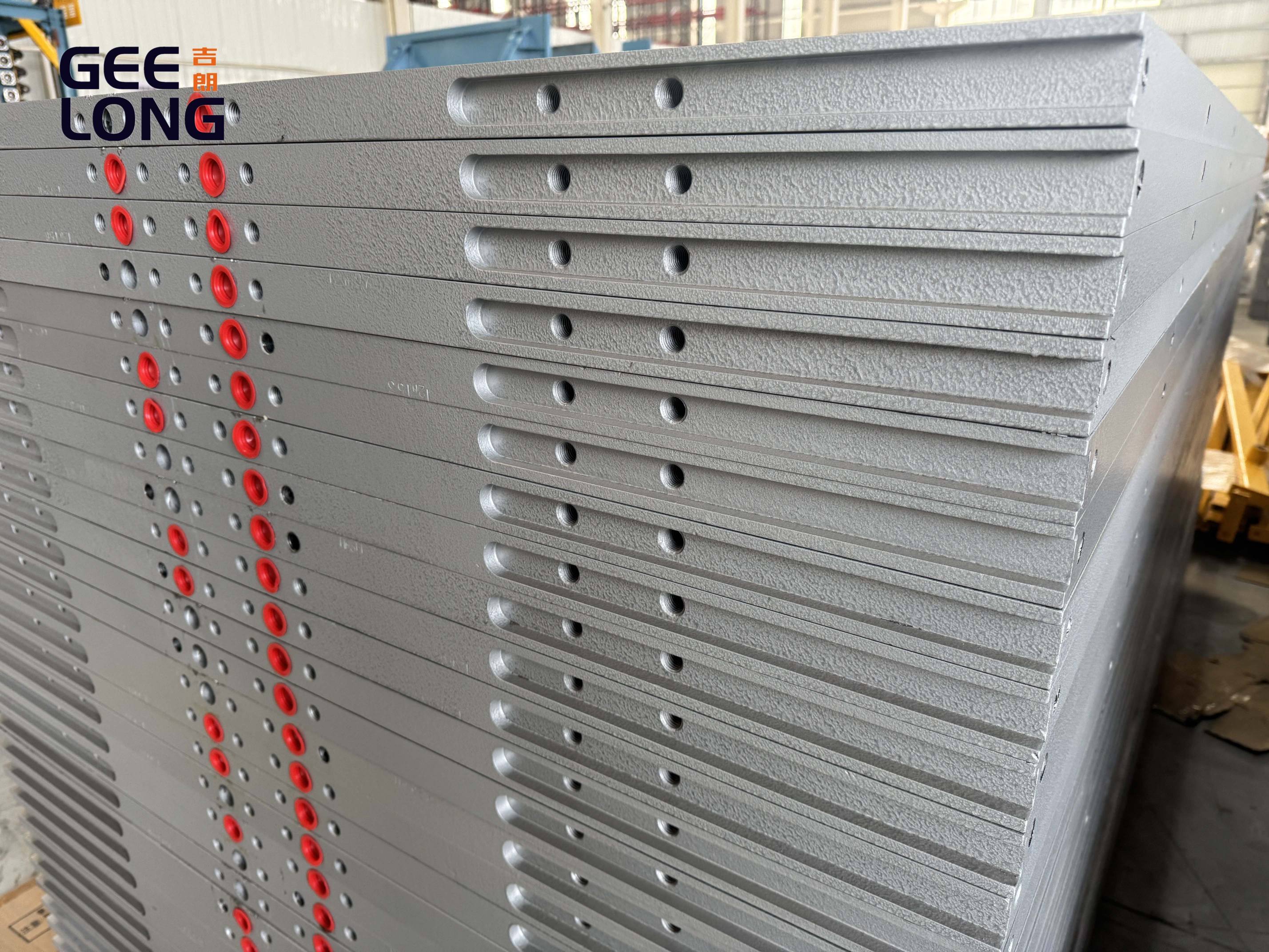 Hot plates for plywood hot press machine, hot press dryer machine, hot plates is used to be heated by thermal oil or steam, the working temperature: 0-220℃,to heat the materials, like plywood board, like the wood veneers, if your plywood hot press machine worked for many years, old hot platens are out of shape, maybe surface is not good, maybe some area is bent, if you are need new hot platens, just send us your drawing of these hot platens, then we can produce for you newly with your drawing.